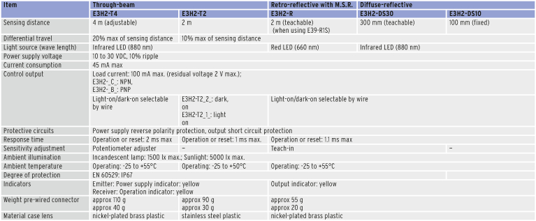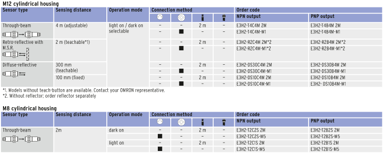 Для монтажу систем виявлення об'єктів в обмеженому просторі E3H2 забезпечує просту установку циліндричних датчиків в металевих корпусах M8 і M12 малого розміру.