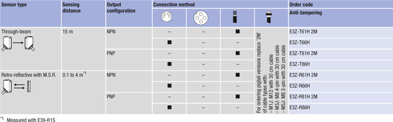 В компактних датчиках E3Z-[]H з сімейства E3Z не передбачена регулювання чутливості, завдяки чому забезпечується максимальний захист від зловмисного втручання.