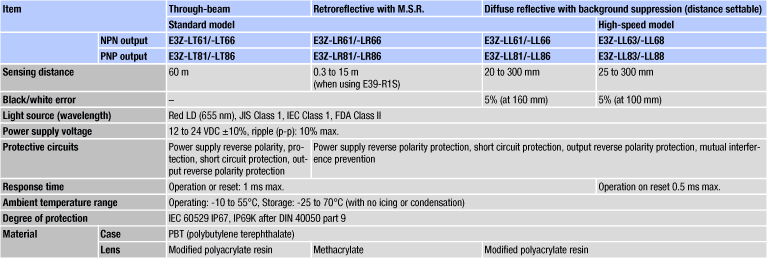 Лазерний датчик E3Z в компактному пластиковому корпусі працює у видимому діапазоні лазерного випромінювання і призначений для точного визначення положення і виявлення об'єктів.