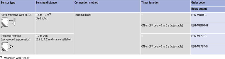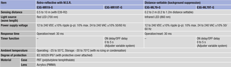 Датчики серії E3G-M характеризуються збільшеною відстанню спрацьовування, властивим сімейства E3G, і можуть застосовуватися в системах з будь-яким напругою живлення (змінного і постійного струму).