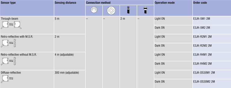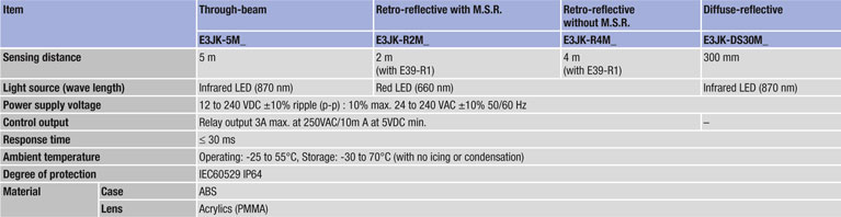 Сімейство квадратних датчиків E3JK працює при живленні від 12 - 240 В пост. струму і 24 - 240 В змін. струму.