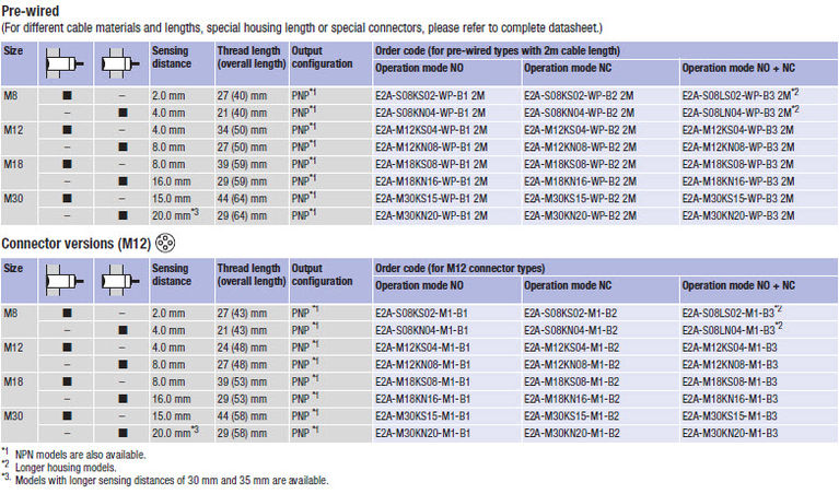 Індуктивні датчики сімейства E2A сконструйовані і випробувані в розрахунку на тривалий термін служби і виготовляються з незмінно стабільною якістю. Їх модульна конструкція лежить в основі неперевершеною функціональної гнучкості сімейства.