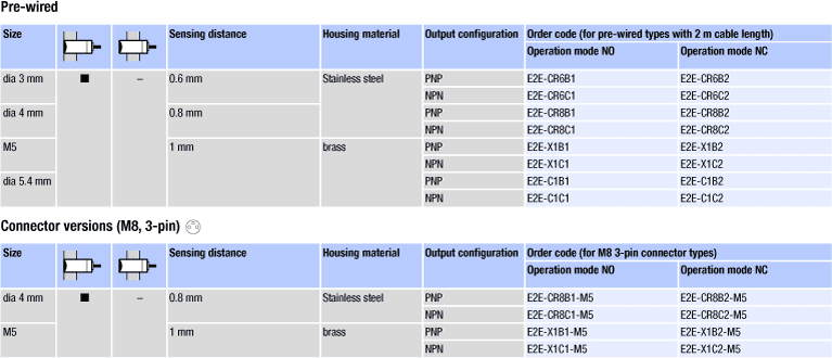 Лінійка мініатюрних датчиків E2E в корпусах діаметра 4 мм, 4 мм, M5 або 5,4 мм є частиною сімейства E2E і ідеально підходить для систем, особливо критичних до певному місці при монтажі.