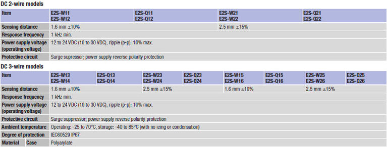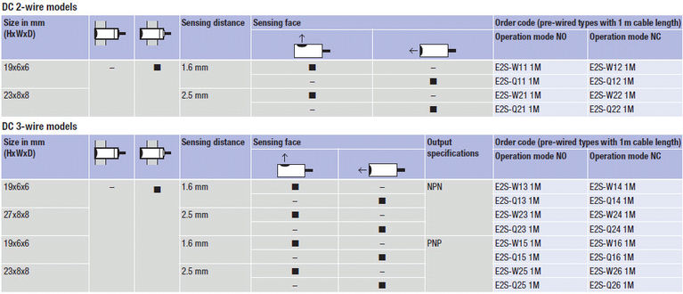 Датчики сімейства E2S випускаються в мініатюрних пластикових корпусах, що мають прямокутну форму, і призначені для особливих умов монтажу.