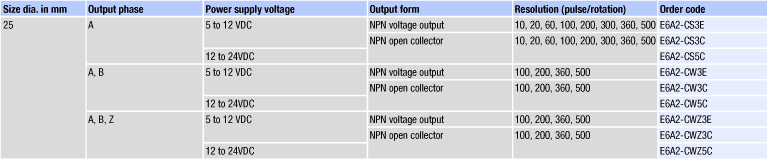 Інкрементні кутові енкодери сімейства E6A випускаються в малогабаритному корпусі діаметром 25 мм.