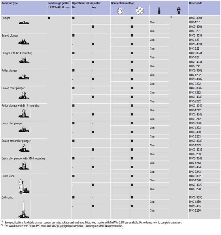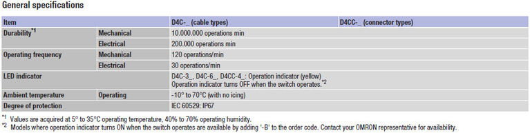Плоска форма з товщиною 16 мм і компактний розмір роблять кінцеві вимикачі серії D4C дуже популярними для всіх стандартних сфер застосування, особливо вони цінуються в умовах обмеженого вільного простору, або якщо виступаючий корпус може перешкодити роботі обладнання. Конструкція з потрійною герметизацією, міцний металевий корпус і точно виготовлені рухомі частини гарантують довгий термін служби в стандартних умовах або в маслі (спеціальні моделі).
