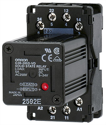 Твердотільні реле, сумісне за формою і розмірами c силовим електромеханічним реле MК Дане напівпровідникове реле сумісне за формою і розмірами з електромеханічним реле MK і монтується на DIN-рейку за допомогою монтажної колодки. Для високовольтних навантажень пропонується модель на вихідну напругу постійного струму, здатна комутувати напруги навантаження в діапазоні від 3 до 125В=.