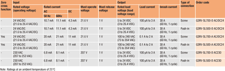 Тонке (6 мм) промислове твердотільне реле, сумісне з реле G2RV Реле серії G3RV не тільки сприяють економії місця в шафі управління завдяки своєму тонкому корпусу, але також відрізняються підвищеною міцністю, великою площею електричного контакту і негнучкими висновками. За допомогою з'єднувачів з замикався кріпленням вони легко і без єдиної помилки можуть бути підключені до ПЛК. Крім того, в моделях G3RV з виходом постійного струму для комутації навантаження в вихідний ланцюга застосований польовий МОП-транзистор, що володіє ідеальними характеристиками тепловіддачі.