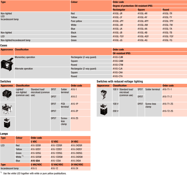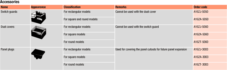 Ці перемикачі мають збірну конструкцію: кнопка + корпус + лампа (якщо передбачено) + перемикач. A16 - це кнопковий перемикач з гайковим кріпленням, з малої настановної глибиною (не більше 28,5 мм нижче рівня панелі).