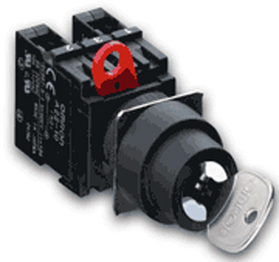 Селекторний перемикач з поворотним ключем, під отвір діаметром 22 мм Ці селекторні перемикачі з поворотним ключем фіксуються на панелі за допомогою гайки і можуть вставлятися в отвори діаметром 22 мм або 25 мм. Збірна конструкція A22K передбачає просту установку і зняття контактного блоку. Можливість розташування контактних блоків в три ряди (до шести контактів) підвищує ефективність монтажу.