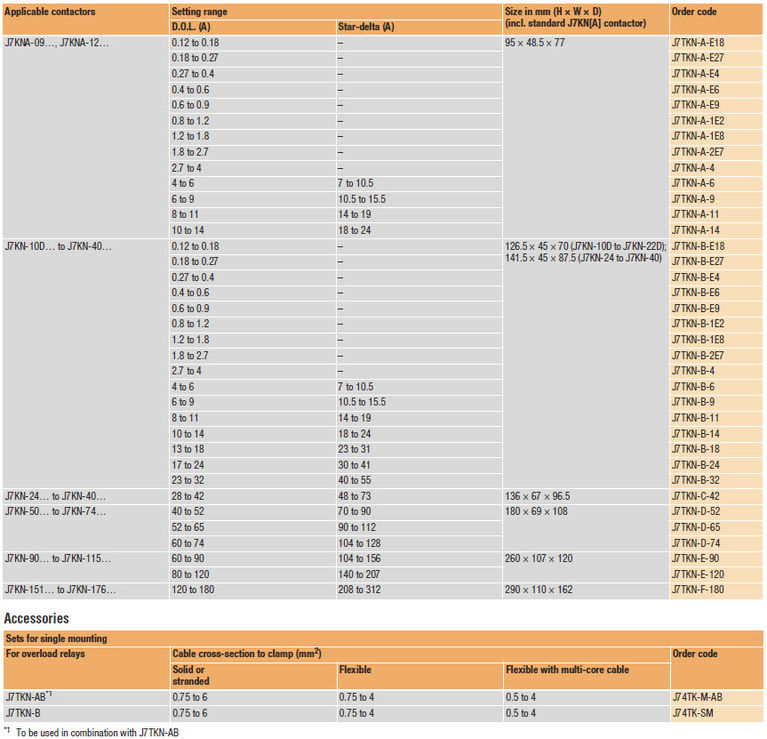 Реле J7TKN захищають двигуни від теплового перевантаження. Вони можуть встановлюватися на контактор або окремо. Пропоновані реле відповідають IEC 947 (захист по кожній фазі).