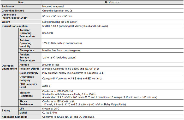 Універсальний машинний контролер NJ3 розширює платформу автоматизації Sysmac для застосувань із 4 і 8 сервоосями. Повністю перероблене апаратне рішення з потужним процесором Intel® Atom™, добре зарекомендували себе для роботи в жорстких промислових умовах, базується на гнучкій і легко налаштовуваній архітектурі на основі програмного забезпечення, на відміну від традиційної жорсткої архітектури на основі спеціалізованих ІС. Ця компактна сучасна технологія забезпечує виняткову гнучкість без шкоди традиційної надійності, яку ви звикли очікувати від ПЛК Omron. Сучасні технічні рішення Спираючись на властиві продукції Omron якість та інноваційні технології, ми розробили серію NJ спеціально для автоматизації високопродуктивних машин. Робота без вентиляторів з ефективним розсіюванням тепла виключає відмови і збільшує термін служби системи. Вбудовані порти Ethernet і USB забезпечують просте підключення і широкі можливості зв'язку. Інтегрований в ЦПУ слот для карт пам'яті SD призначений для зберігання даних на стандартному носії. Забезпечено сумісність з більшістю модулів введення / виведення серії CJ для полегшення модернізації систем управління на базі ПЛК серії CJ. Основні характеристики: