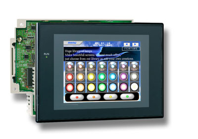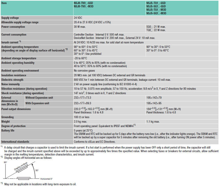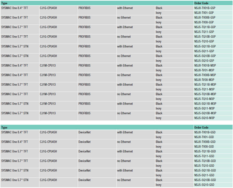 Програмований термінал з 5,7-дюймовим TFT / STN екраном в комбінації з ПЛК і мережевим інтерфейсом Дана модель з екраном на 256 кольорів (32 768 (TFT) або 4096 (STN) при відображенні об'єктів растрової графіки) забезпечена двома USB-портами для завантаження екранів або їх виведення на друк, а також роз'ємом для приєднання додаткової плати Ethernet. Програмований термінал об'єднаний в одному корпусі з ПЛК CJ1G-CPU 45H або більш економічним CJ1M-CPU13 і мережевим інтерфейсом DeviceNet або Profibus. Компактний корпус цього комбінованого пристрою займає менше місця, ніж входять в нього окремі продукти. Архітектура Sysmac One повністю прозора, тому і ПЛК, і мережа (включаючи польові пристрої), і програмований термінал доступні через один порт. При дистанційному обслуговуванні системи це є великою перевагою.