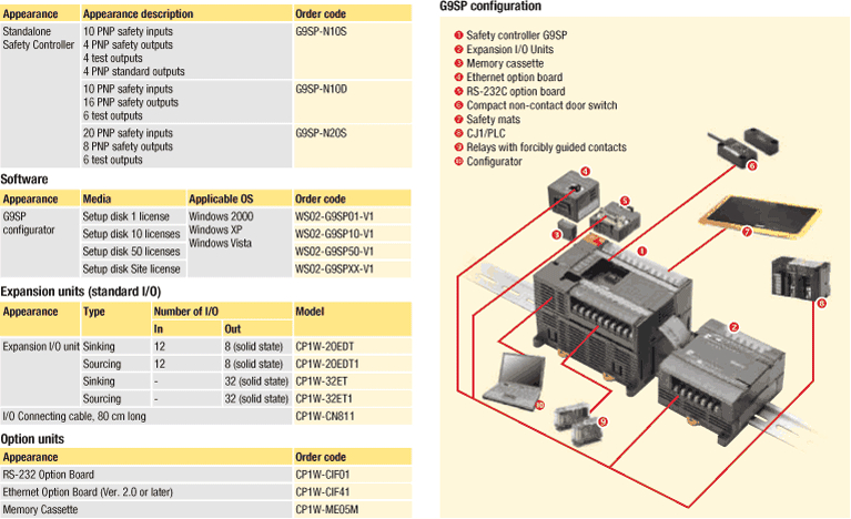 Контролер G9SP оснащений усіма локальними входами і виходами з функцією безпеки і призначений для управління додатком безпеки. Стандартні входи і виходи мають можливість прямого підключення, а діагностичні дані передаються через послідовний інтерфейс або інтерфейс Ethernet.