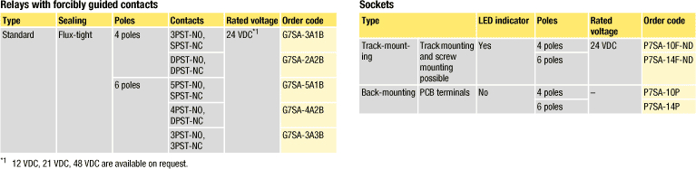 Pеле з механічно пов'язаними контактами для монтажу в колодку або на друковану плату Сімейство мініатюрних реле G7SA з механічно пов'язаними контактами об'єднує 4-полюсні і 6-полюсні моделі з різними комбінаціями контактів і посиленою ізоляцією. Спеціальне розташування виводів спрощує монтаж на друковану плату. Допускається безпосередній монтаж паянням на друковану плату або установка в монтажні колодки P7SA.