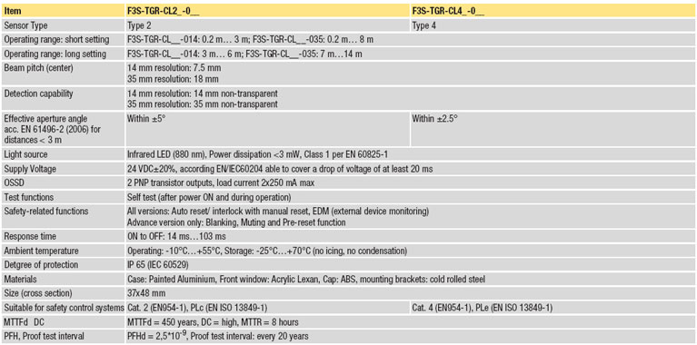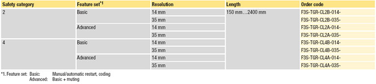 Серія бар'єрів безпеки F3S-TGR-CL легко встановлюється, монтується і конфігурується для захисту пальців, рук і тіла у відповідності з категорією 2 і 4, завдяки простоті установки відповідних функцій.
