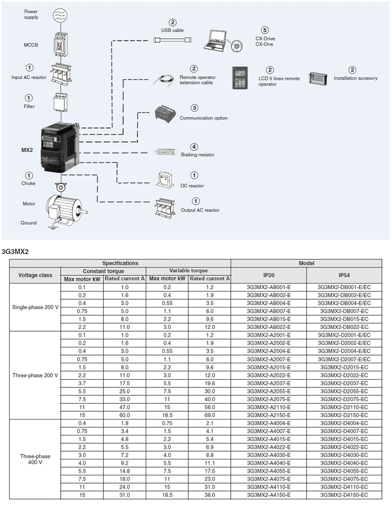 Компактний інвертор з векторним керуваннямПеретворювач частоти MX2 сконструйований спеціально для застосування у виробничому обладнанні.