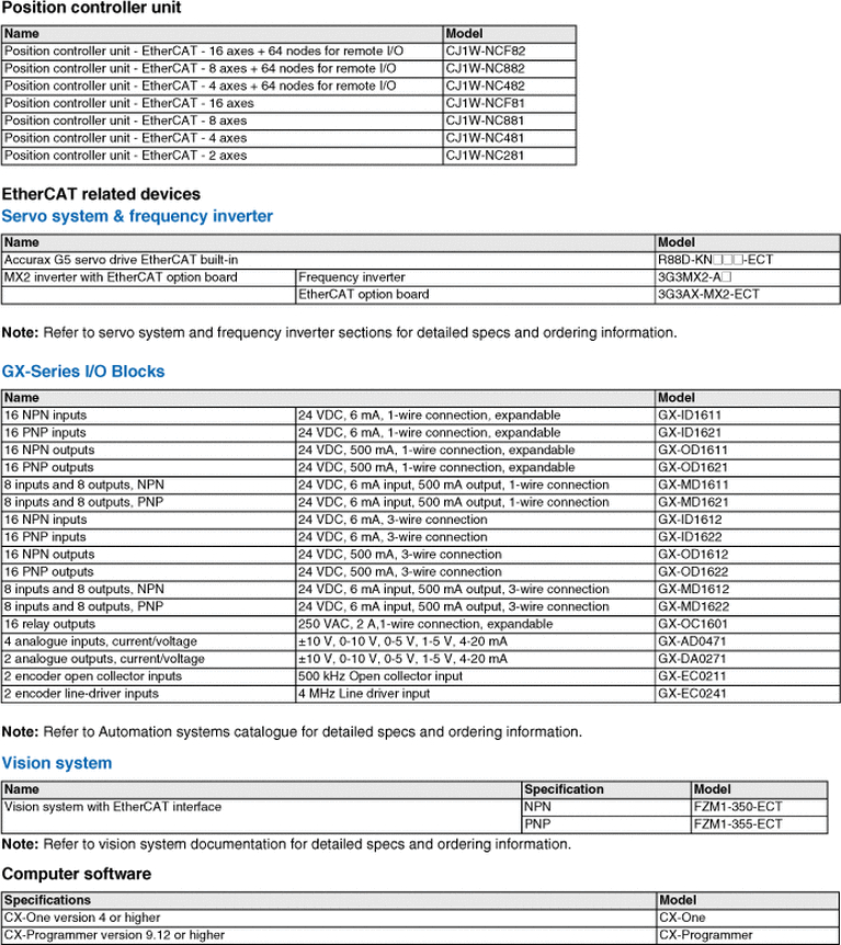 - Програмне забезпечення CX-Programmer для настройки блоків, мережі EtherCAT і програмування ПЛК.