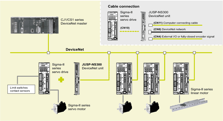 NS300 є рішення на базі приводу для задач простого і надійного позиціонування з використанням мережі DeviceNet.