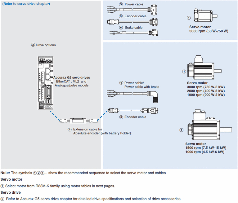 Сервоприводи Accurax G5 мають захист IP67 і роз'єми на корпусі двигуна. Використання 10-полярних двигунів і 20-бітного енкодера дозволяє домогтися 40-процентного зниження Зубцову перешкод в двигуні. Серводвигуни стали на 25% легше і на 15% менше завдяки новій запатентованій конструкції статора PAC-Clamp, на 40% зменшилися втрати в сталі і на 15% став менше розмір енкодера.