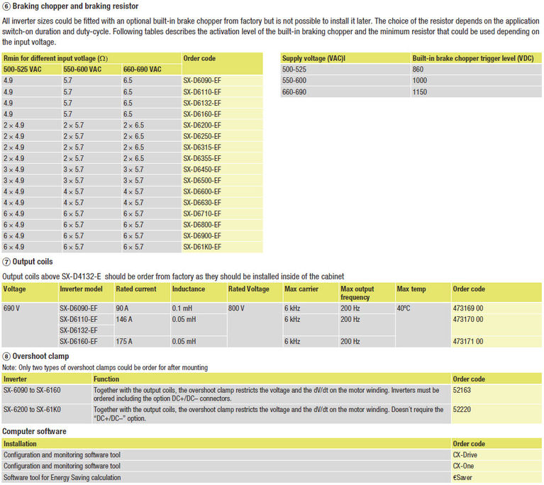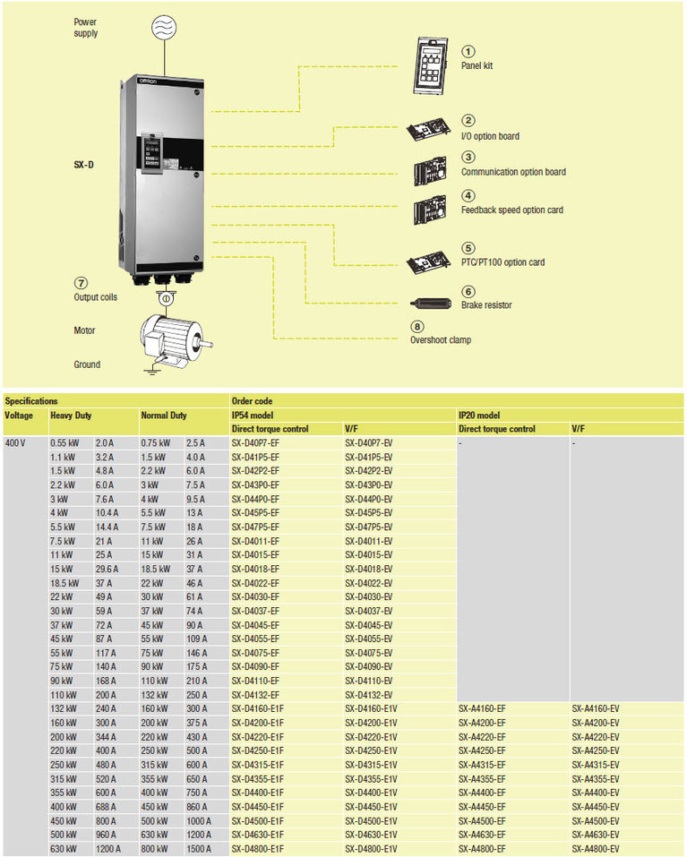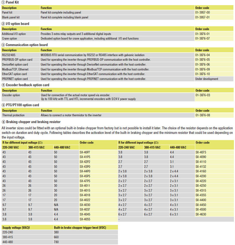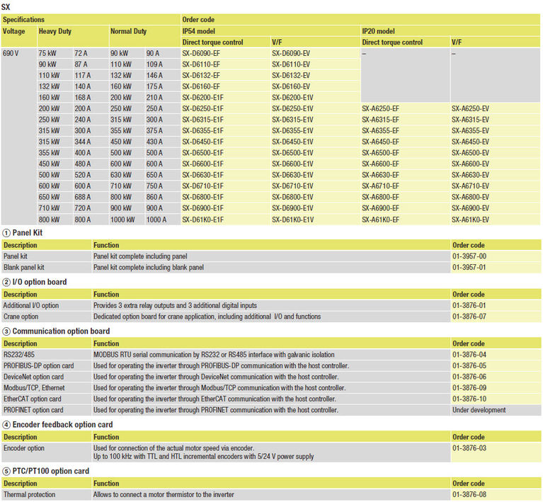 Новий інвертор SX розроблений для роботи в пристроях, що вимагають високого рівня потужності, від насосів, вентиляторів, компресорів або нагнітачів до управління вектором в замкнутому контурі, необхідного в кранах, дробарках, пресах або мешалках. Стандартний інвертор має вбудоване програмне забезпечення для конкретних завдань, а конструкція його апаратного обладнання забезпечує універсальність у використанні.