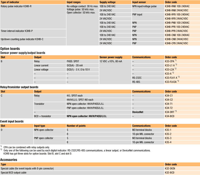 Індикатор-вимірювач часових інтервалів для вимірювання часу, швидкості та тривалості інтервалу між двома імпульсами Панельні індикатори-вимірювачі з аналоговими входами серії K3HB забезпечені яскравим і зручним дисплеєм, здатним змінювати колір показань. Всі моделі випускаються в корпусі з пилонепроникної і водонепроникною лицьовою панеллю зі ступенем захисту IP66.