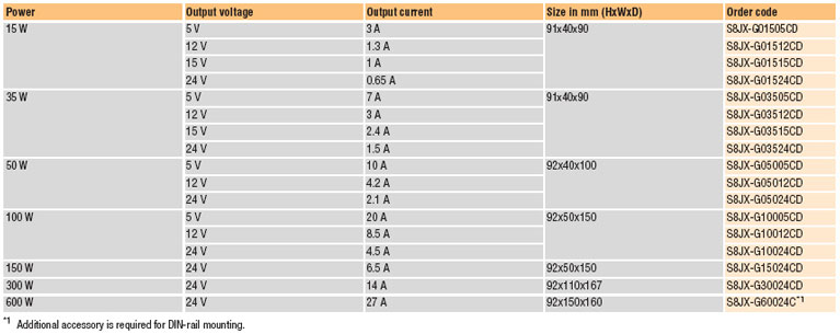 Компактне і економічне джерело живлення Модель S8JX-G - це економічне джерело живлення, що відрізняється високою якістю і надійністю, характерними для всієї продукції компанії Omron. Ці джерела харчування мають діапазон потужності до 600 Вт, вихідна напруга 5, 12, 15 або 24В постійного струму. Завдяки своїм малим габаритним розмірам і різноманітності варіантів кріплення це прилад займе набагато менше місця на панелі управління. Мінімальний термін служби 10 років, захист від підвищеної напруги, перевантаження по струму і короткого замикання - все це забезпечує максимальну надійність моделі S8JX-G, характерну для всієї продукції компанії Omron.