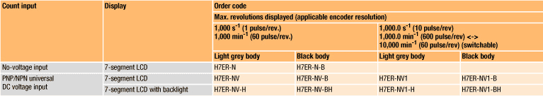 Тахометр з автономним живленням Моделі серії H7E оснащені великим РК-дисплеєм з висотою символів 8,6 мм. Також передбачені моделі із заднім підсвічуванням індикатора, що підвищує видимість показань в умовах поганого освітлення. Серія H7E включає накопичувальні лічильники, таймери, тахометри і лічильники, призначені для монтажу на панель.