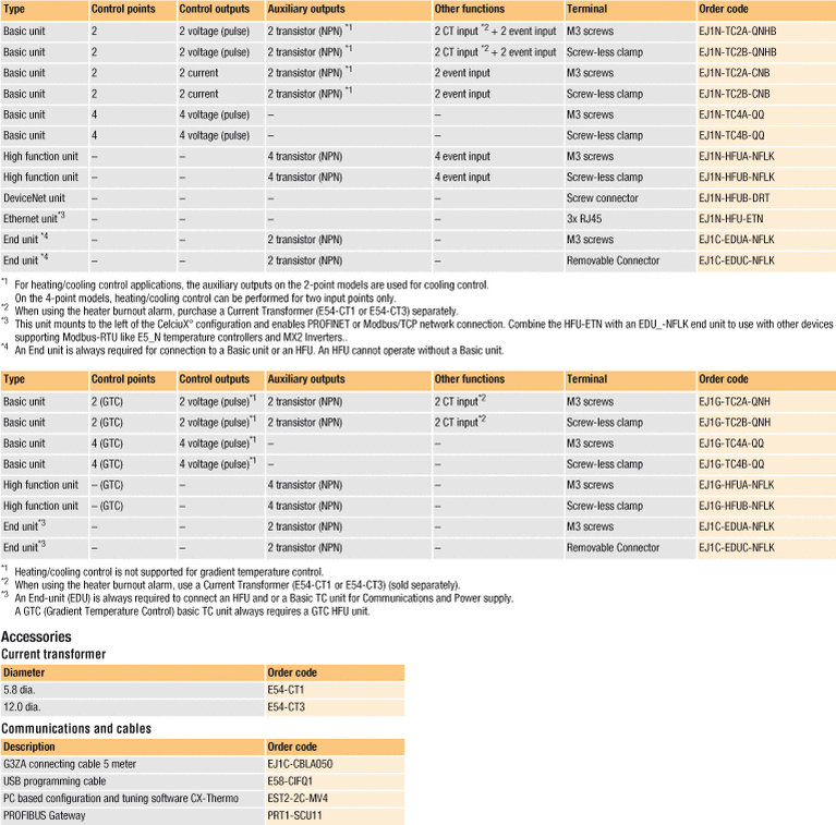 Модульний регулювальник температури CelciuX? (EJ1) - Регулювання і широкі можливості зв'язку Регулятор CelciuX? (EJ1) призначений для управління складними температурними профілями із застосуванням унікального алгоритму регулювання по градієнту температури (GTC) компанії Omron і може легко і без будь-якого програмування обмінюватися даними з ПЛК і людино-машинними інтерфейсами виробництва Omron і інших виробників. Крім того, в CelciuX? (EJ1) реалізовані всі технології інтелектуального регулювання температури, орієнтовані на простоту у використанні, серед яких 2-ПІД регулювання, функція компенсації збурень і різні способи налаштування.